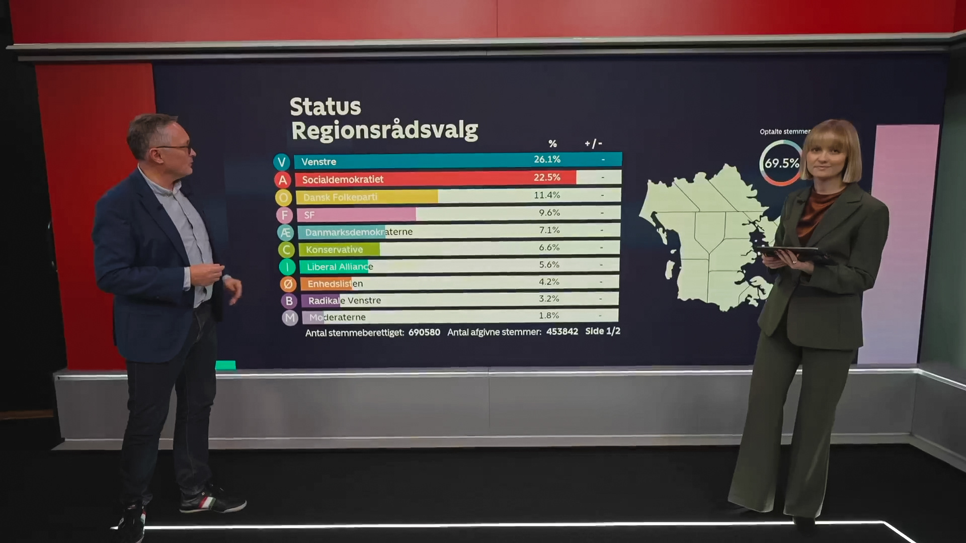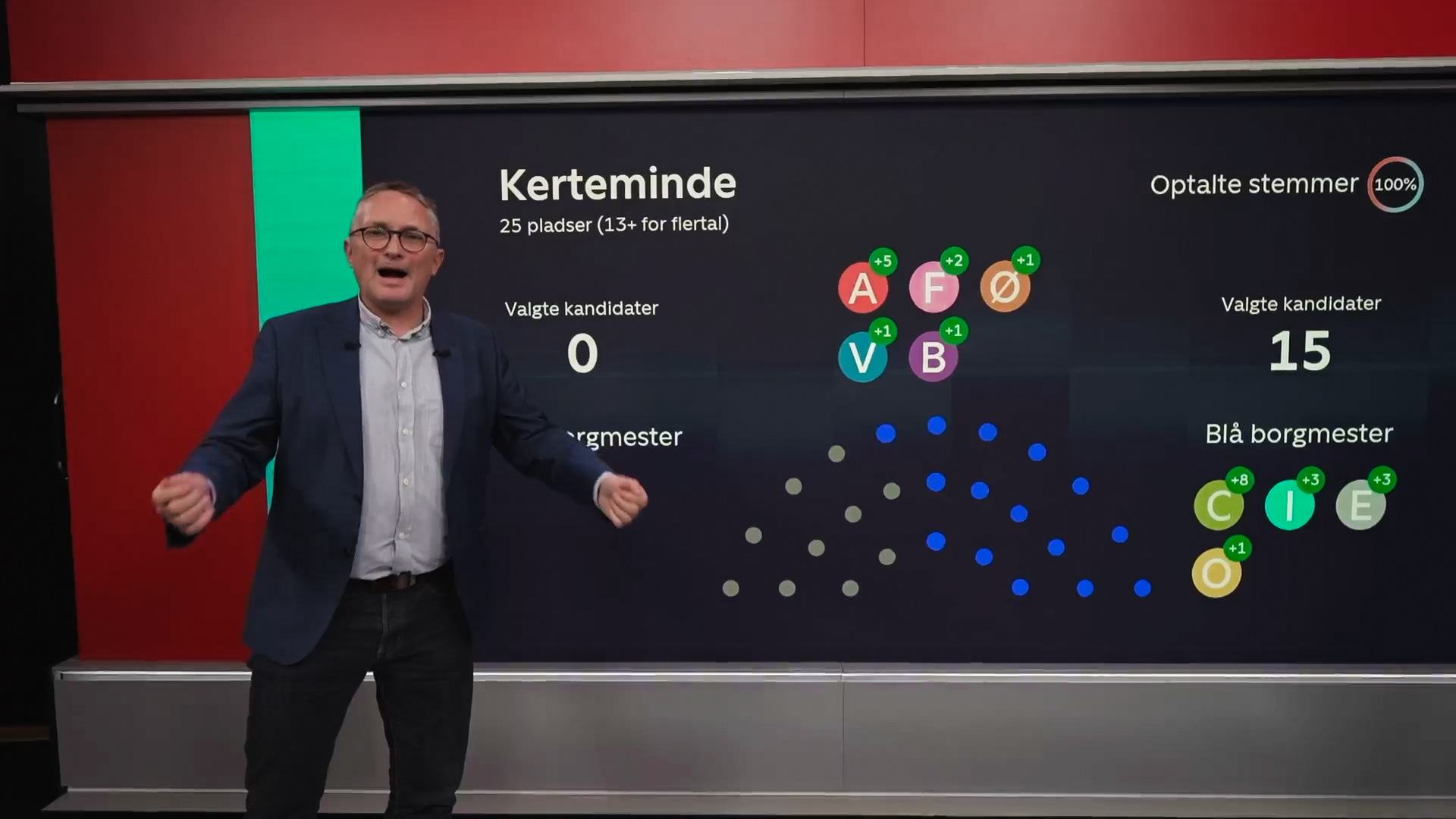 Værterne på valgaftenen kunne selv betjene grafikken i TV-studiet ved hjælp af en Ipad, så de kunne springe fra kommune til kommune for at se, hvor langt de var i optællingen af stemmer.